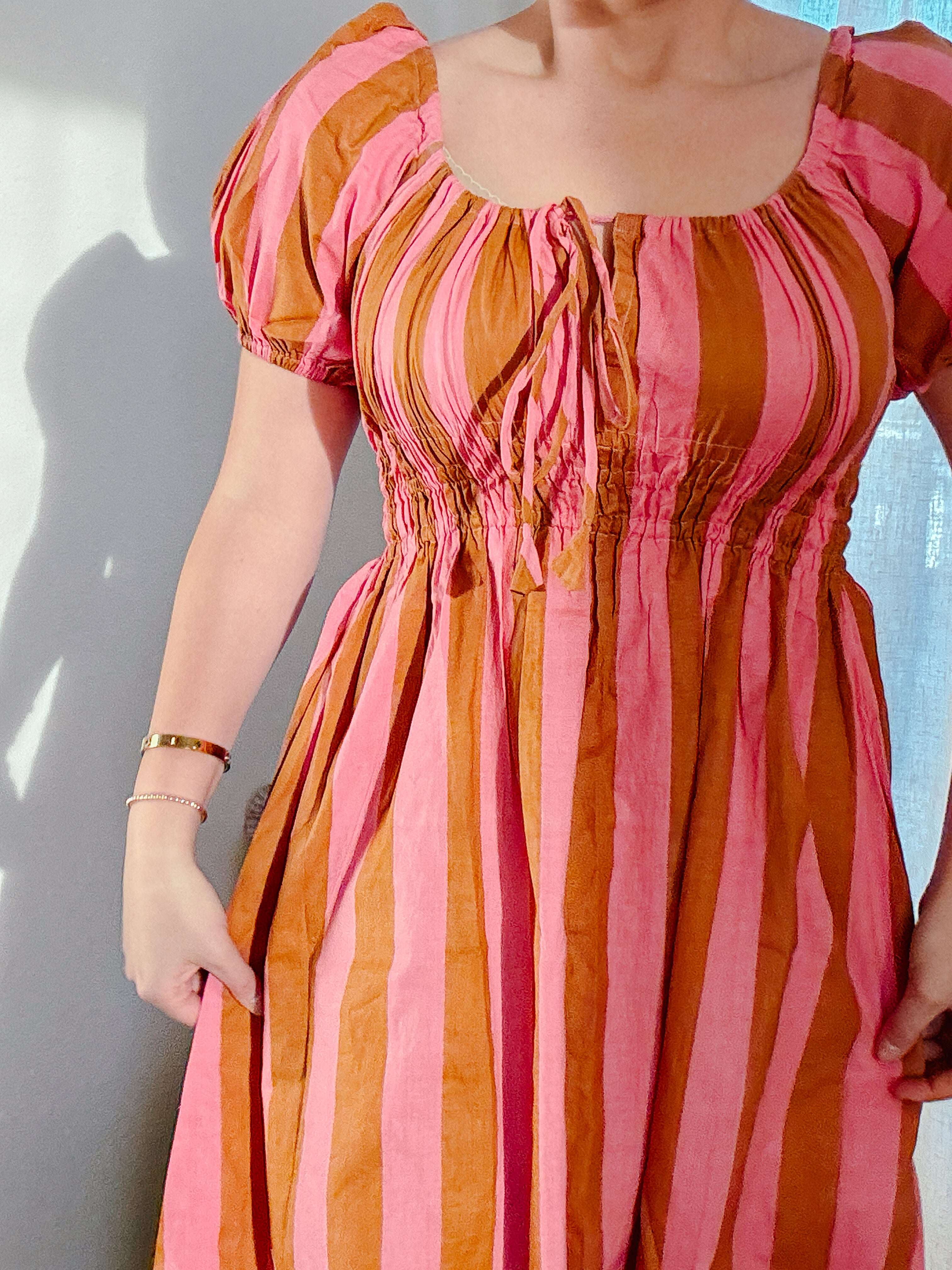 Sunday Puff Sleeve Dress- Rosewood Stripes