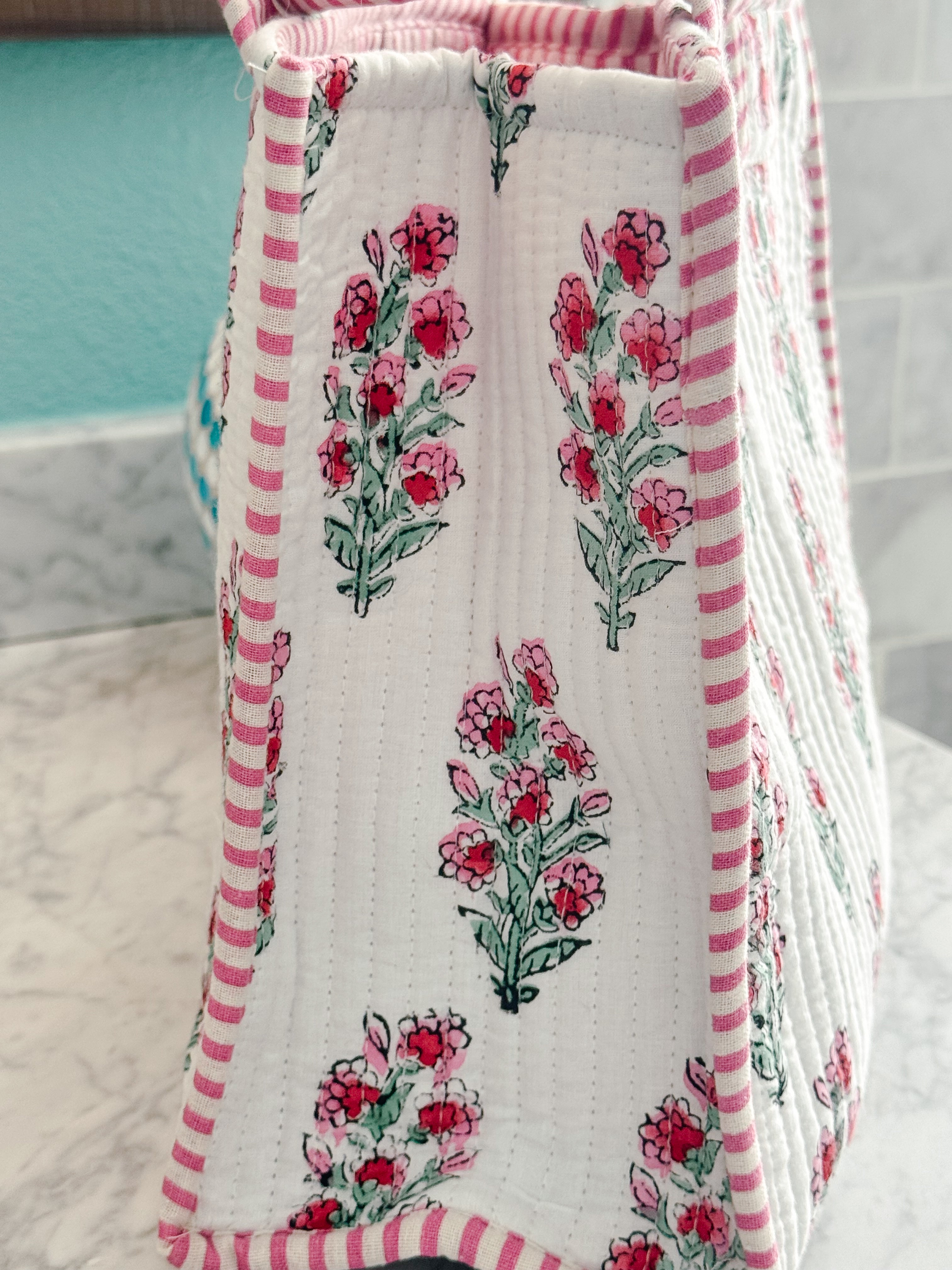 Chic, petite, and endlessly versatile. The Mini Tote is crafted from 100% quilted cotton and handmade with thoughtful attention to detail—each stitch bringing texture and charm. Designed to be carried from errands to evenings, it’s the perfect size for your everyday essentials without ever feeling bulky. Lightweight yet durable, this petite tote pairs timeless style with effortless function, making it a piece you’ll reach for daily.