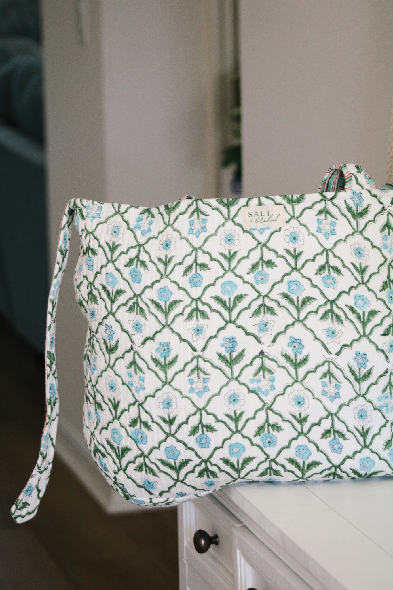An easy, oversized carryall made from 100% quilted cotton. The Everyday Tie Tote features a simple tie detail at the center and a soft, structured shape that holds everything you need. Perfect for errands, travel days, or an effortless grab-and-go.